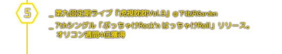 5月_第九回定期ライブ『虎視眈眈Vol.9』@下北沢Garden/ 7thシングル「ぶっちゃけRock'n はっちゃけRoll」リリース。オリコン週間4位獲得